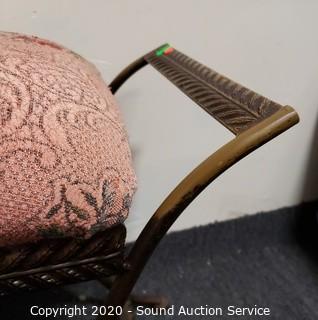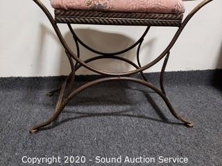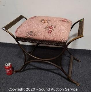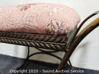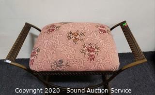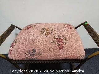 Lot #0010: Steel Frame Floral Print Vanity Bench Stool