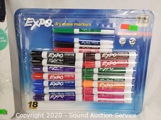 Lot #0123: 18pk Expo Dry Erase Markers & Boogie Board