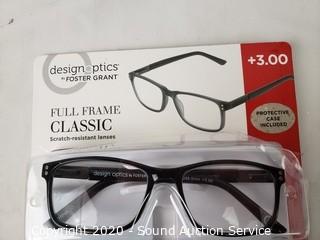 Lot #0190: 5 Design Optics +3.0 Reading Glasses