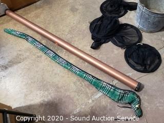 Lot Details: Rod comes with soft and hard case. 10" and 13" nets, 9" x 10.5" pail.
