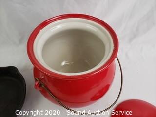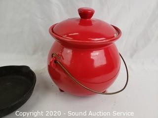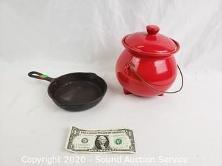 Lot #0071: 6" Cast Iron Skillet & Footed Pottery Cauldron
