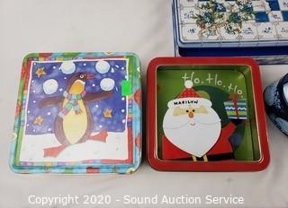 Lot #0102: 8 Vtg. Tins w/Lids