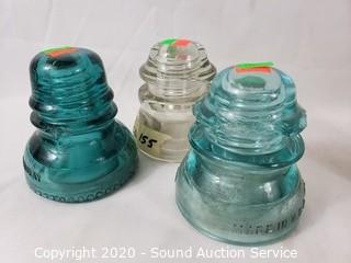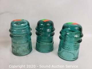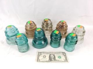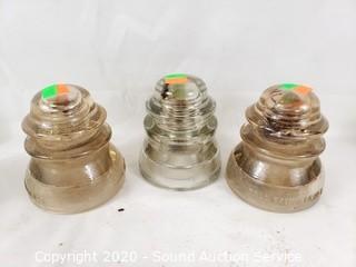 Lot #0262: 9 Vintage 4" Brown, Clear & Green Glass Insulators