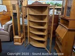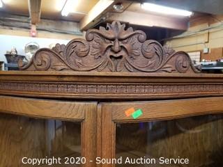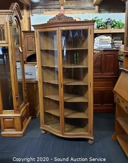 Lot #0148: Antique Oak Serpentine Corner Curio Cabinet