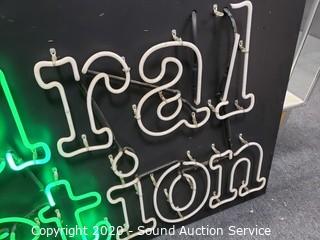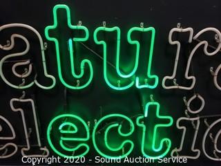 Lot Details: 42" x 89". Only center section "TU & ETC" light up, the "L" in Natural is broken. Has 3 plugs.