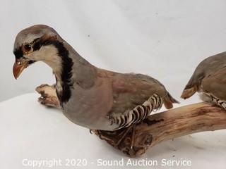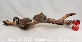 Lot Details: Mounted to a branch. Birds are approx. 11-13" long, 37" long branch.