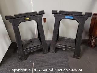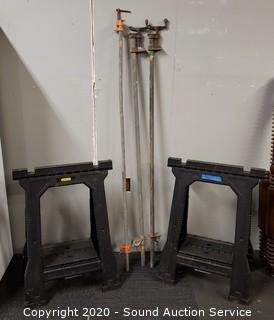 Lot #0129: Pair of Stanley Plastic Sawhorses & 3 Bar Clamps