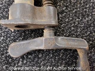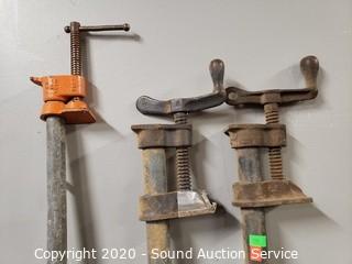 Lot Details: 32" x 22" sawhorses, 5'ft bar clamps.