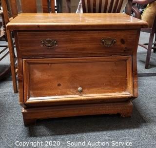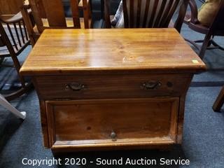 Lot Details: Single drawer and drop front lower storage. 24" x 28" x 17". Some wear to the finish, refer to photos.
