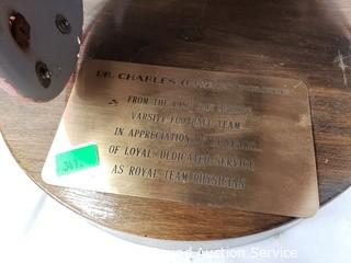Lot Details: From the 1980 San Marcos Varsity Football Team in appreciation of 19 years of loyal, dedicated service as royal team physician. No shade. 26" x 10" diameter.