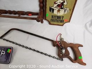 Lot #0186: Vikings Sign, Coat Rack, Saw & Other Decor