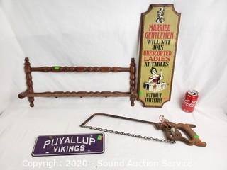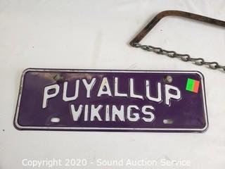 Lot Details: Includes saw decor and Puyallup Vikings sign. Coat/hat rack is 23" x 11".