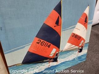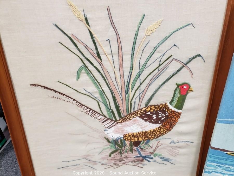 Lot #0279: Yarn Knitted Pheasant & Fabric Sail Boat Artwork