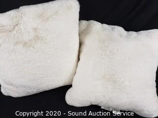 Lot #0400: 3 White Faux Fur 20" Accent Pillows