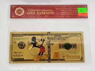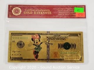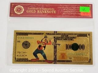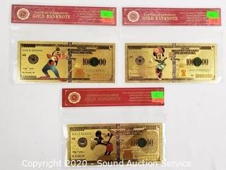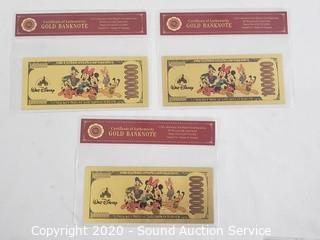 Lot #0047: 3 Disney 24K Gold 99.9% $1Mil Bank Notes