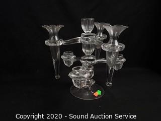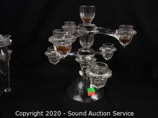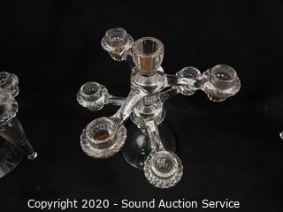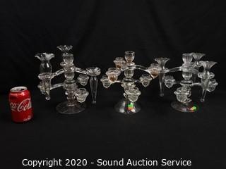 Lot #0242: 3 Beautiful Crystal/Clear Glass Candelabras