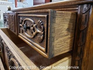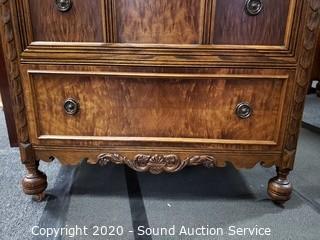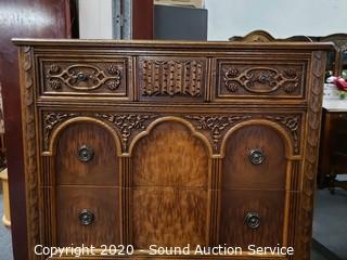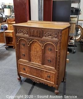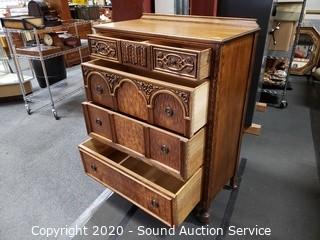 Lot #0007: Beautiful Ornately Carved 4-Drawer Highboy Dresser