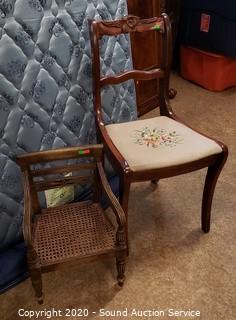 Lot #0331: Child Wicker Bottom & Mahogany Needlepoint Chairs