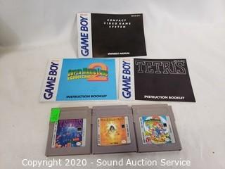Lot Details: Works. Comes with Tetris, Super Mario Land 2 and Daedalian Opus cartridges and original box.