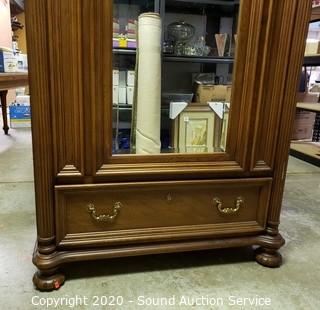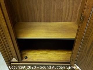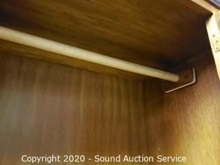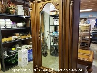 Lot Details: Single drawer, beveled mirror, adjustable shelf, clothes rod, solid oak and particle board construction. 80" x 38" x 20". In excellent condition, well made.