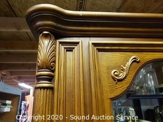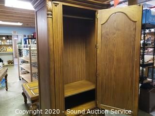 Lot #0170: Oak Finish Mirrored Front Armoire