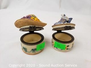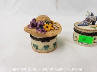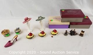 Lot Details: Includes hat, shoes, Boyd's Bears village and hinged boxes.