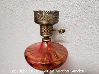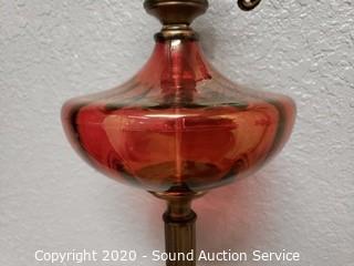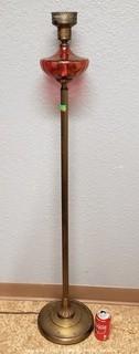 Lot #0335: Vintage Brass Cranberry Glass Floor Lamp
