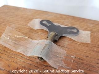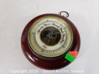 Lot Details: Mantle clock's face has some crazing, comes with key, oak construction, 10" x 15" x 5.5". Barometer is Atco Germany. Both work.