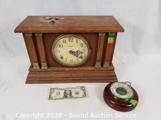 Lot #0365: Vintage Ingraham Imperial Mantle Clock & Barometer