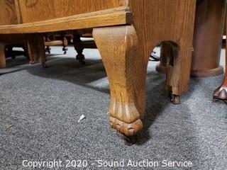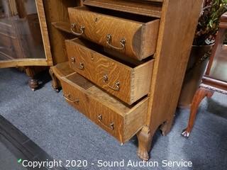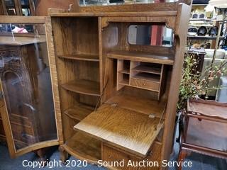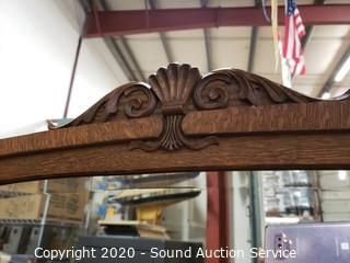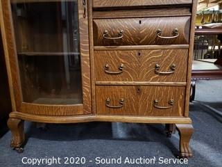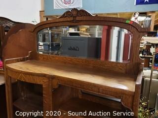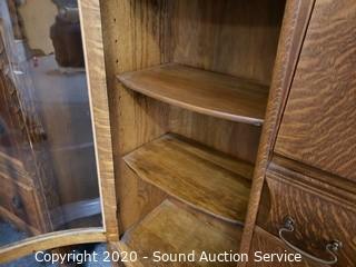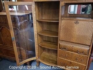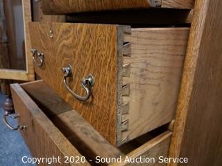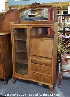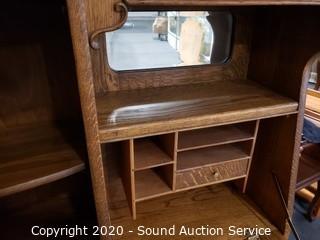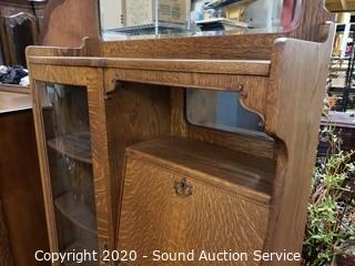 Lot #0021: Vintage Tiger Oak Double Mirror Secretary Hutch