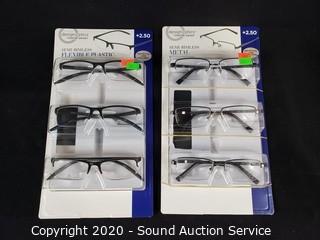 Lot #0267: 6 Design Optics +2.5 Reading Glasses