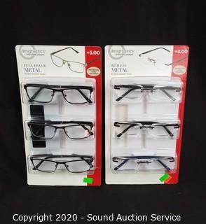 Lot #0213: 6 Design Optics +3.0 Reading Glasses