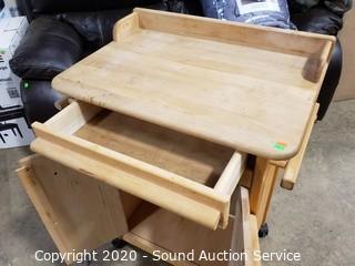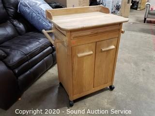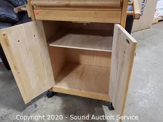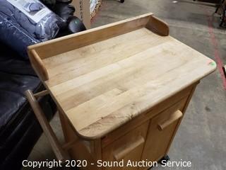 Lot #0081: Natural Wood Finish Rolling Kitchen Island Cart