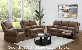 Lot #0003z: New Abbyson Winston Leather Reclining Sofa