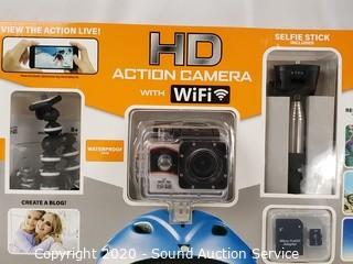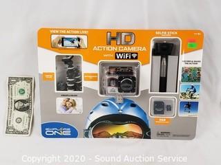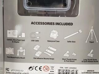 Lot Details: Factory sealed, comes with SD card, waterproof case, tripod, selfie stick. 1080p.