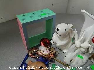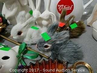 Lot #0102: Cat & Bunny Figurines, Trinkets & More