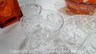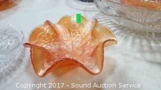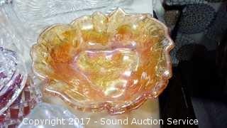 Lot #0010: Crystal, Clear & Carnival Glass Dishes