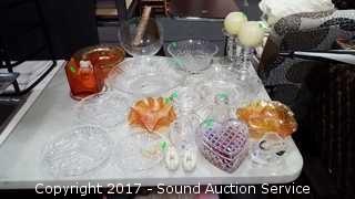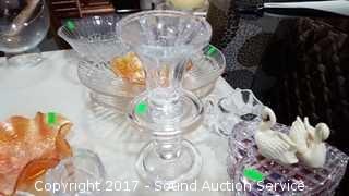 Includes: Console bowls, candlestick holders, carnival glass bowls, and more.