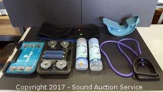 Includes: Stretch bands, back brace and dumbbell set with case.