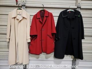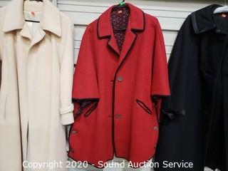 Lot Details: Includes aVassar Creation by Modern Deb, Ein Wfuodell (made in Austria) and Kashara by Lorendale. All approx. size 40, only one is marked. 2 are wool, unsure of the fabric on the other.