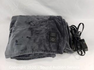 Lot #0401: Brookstone Gray Plush Heated Throw