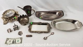 Lot #0352: Sterling Napkin Ring, Token Disp. & Silverplate