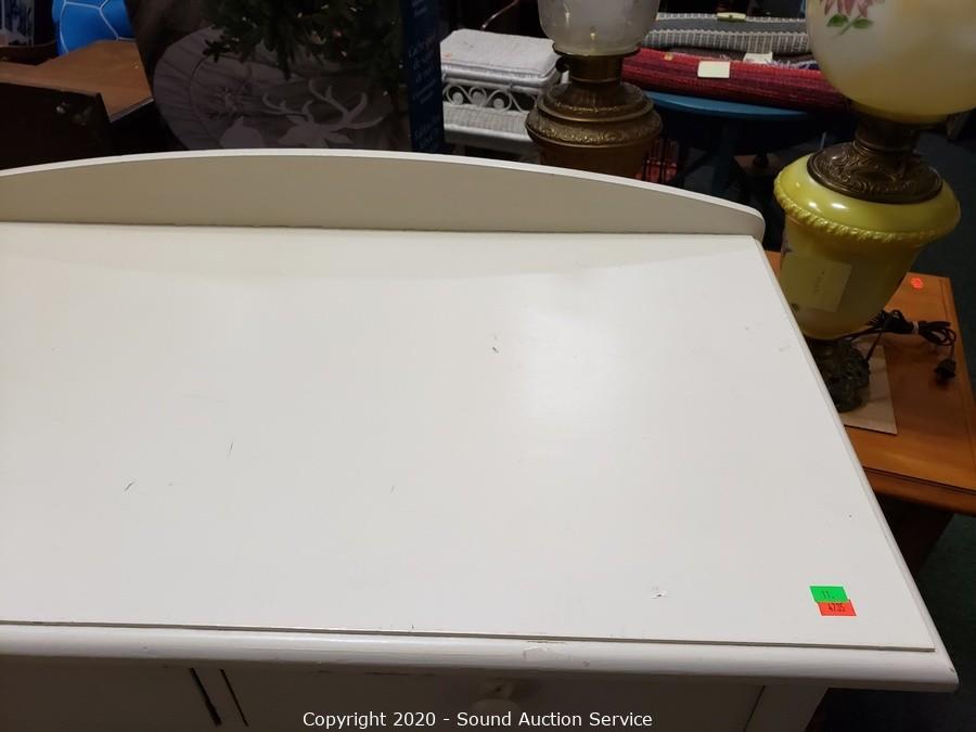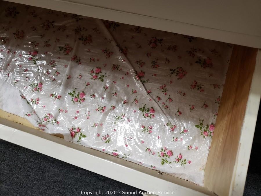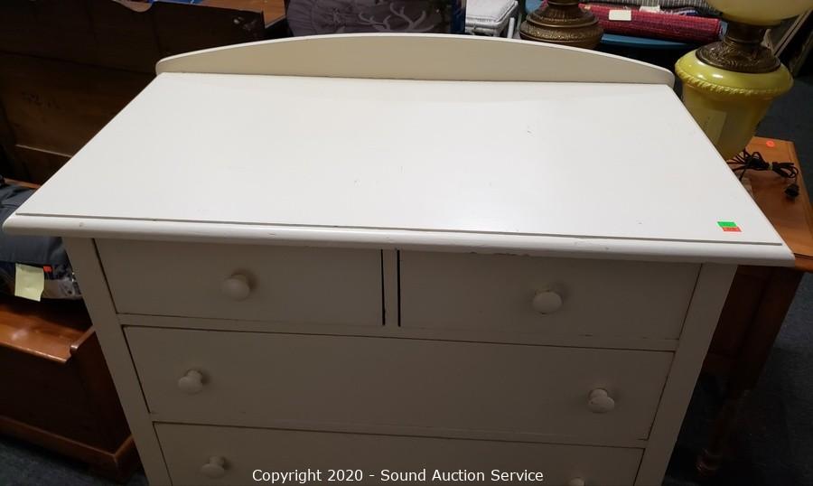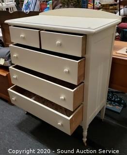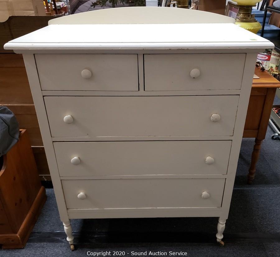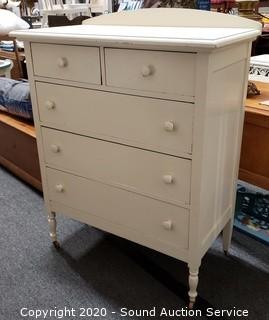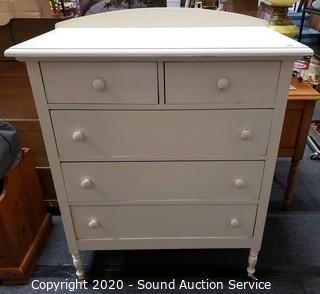 Lot #0011: Vintage 5 Drawer Ivory Dresser