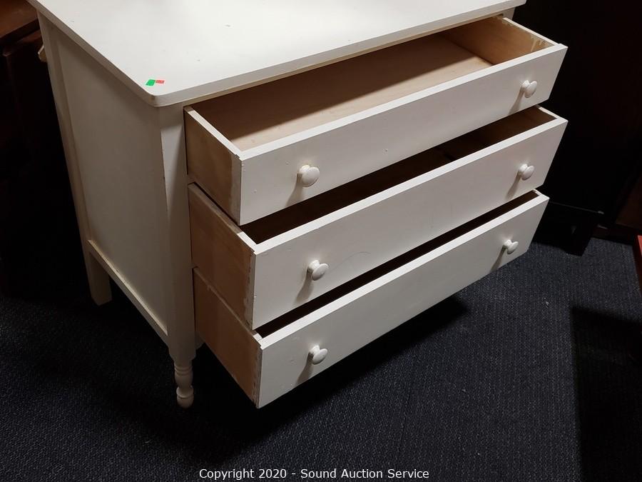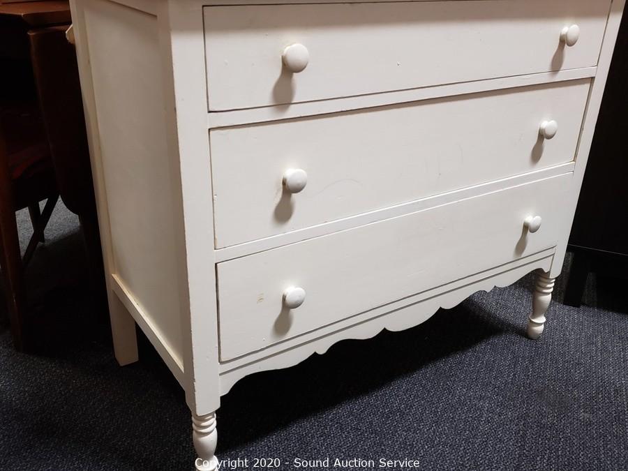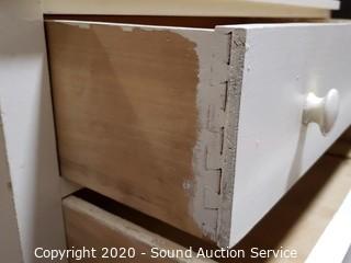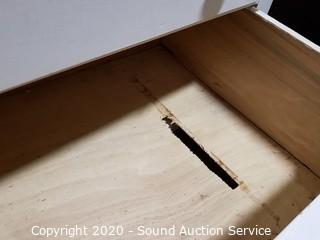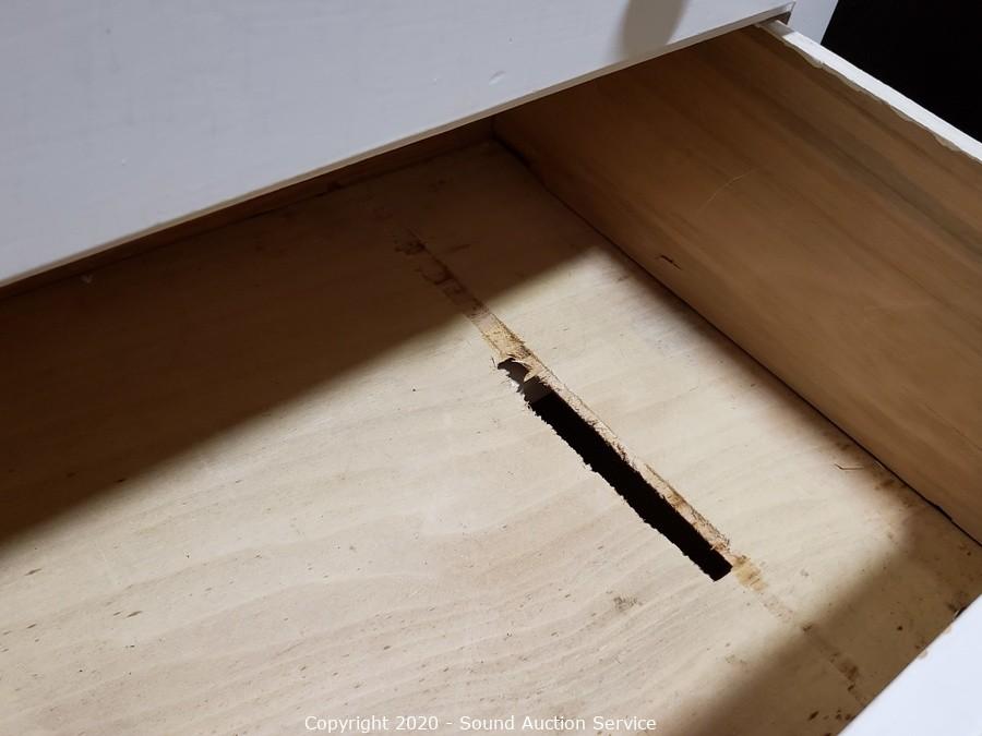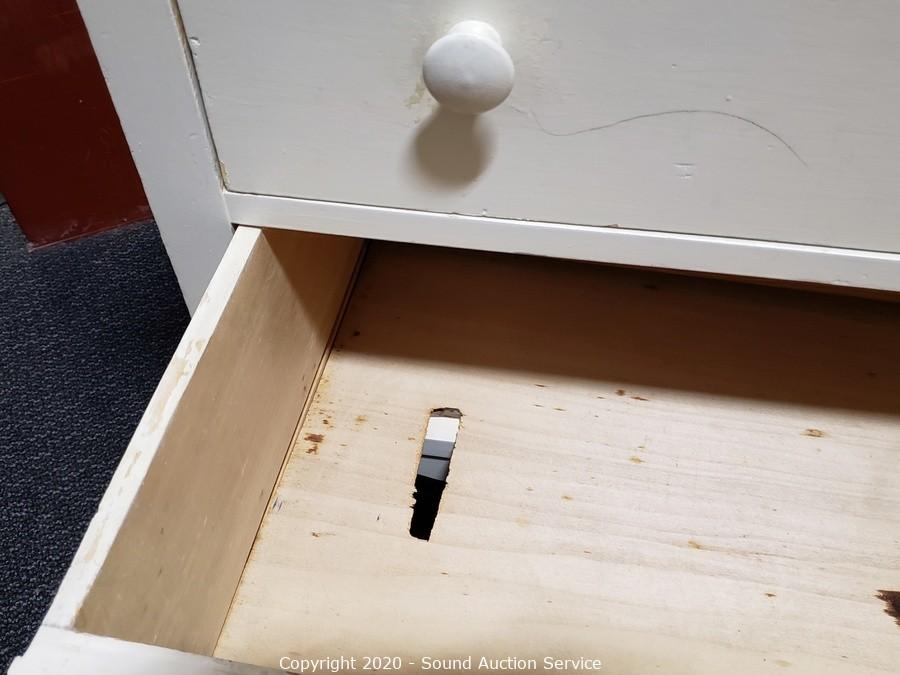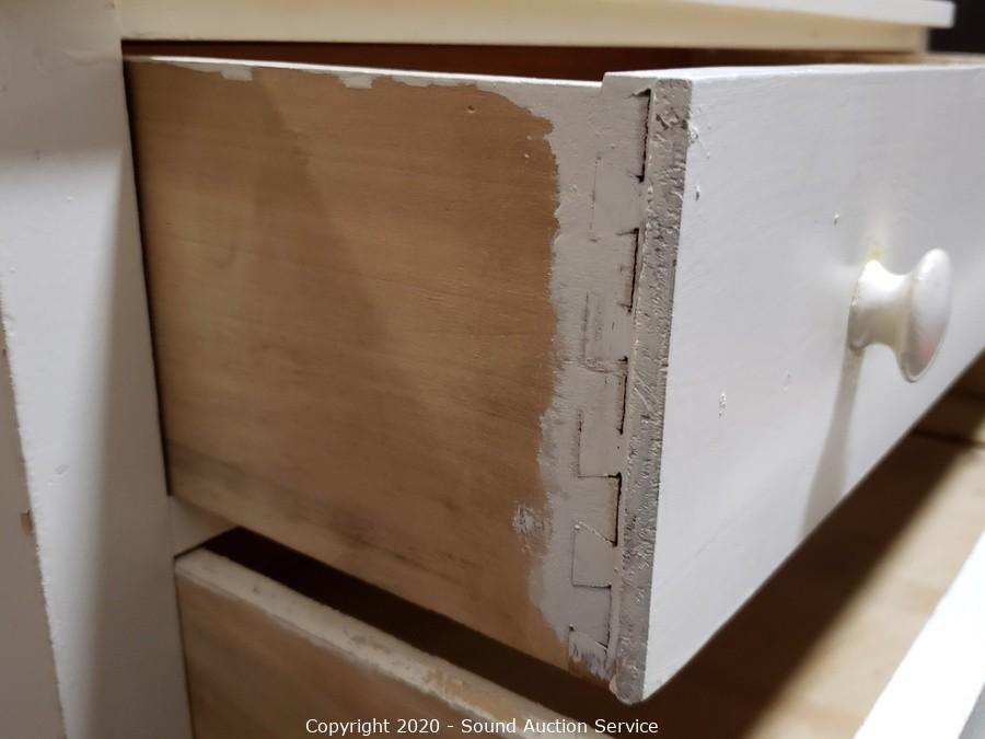 Lot Details: Solid wood construction, dovetail joinery. Some wear, refer to photos. Two of the drawers have holes in them. 34" H x 38.5" W x 19.5" D, 35" H topper.