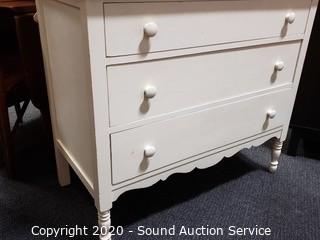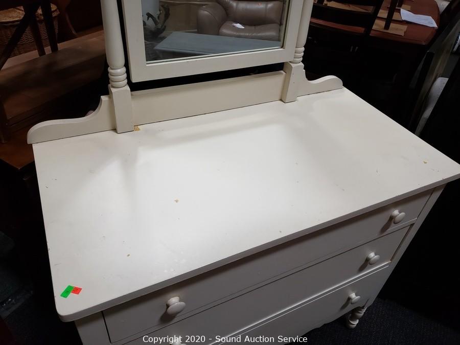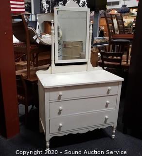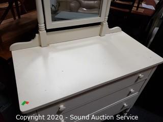 Lot #0010: Vintage Ivory 3 Drawer Mirrored Vanity