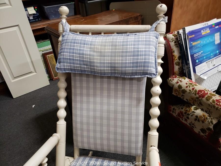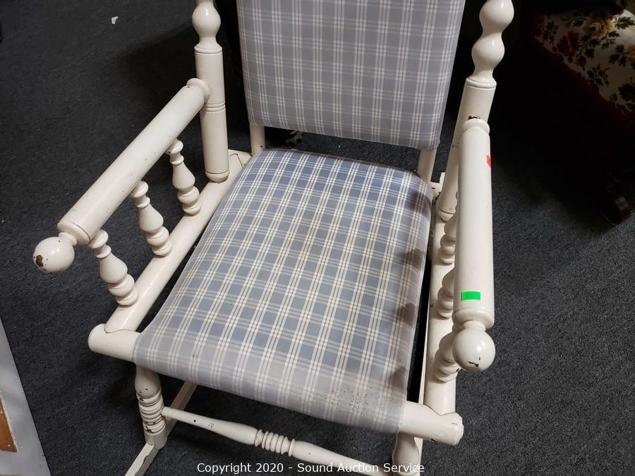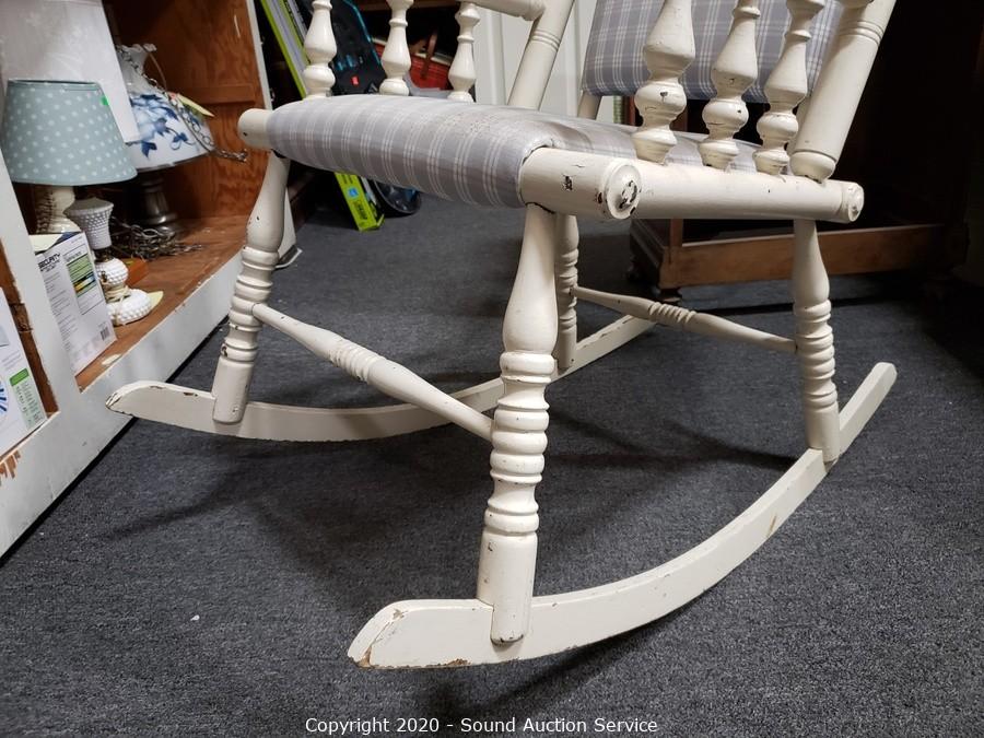 Lot #0126: Vintage White Painted Padded Rocking Chair