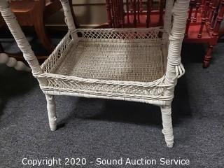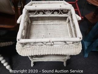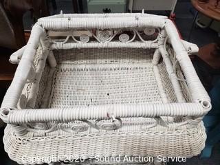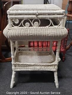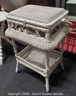Lot #0026: Vintage White Wicker Sewing Chest
