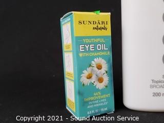 Lot Details: 3.4oz and 6.7oz bottles of SPF50 sunscreen, 0.5oz bottle Sundari youthful eye oil with chamomile. All full or mostly full.