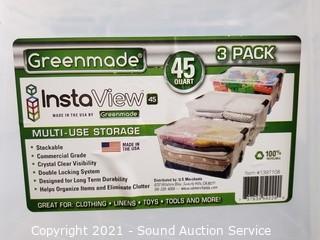 Lot #0466: 3pk Greenmade 45qt Clear Totes w/Lids