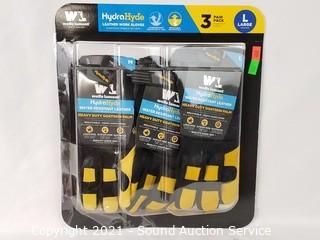 Lot #0263: 3pk Wells Lamont Hydrahyde Leather Work Gloves